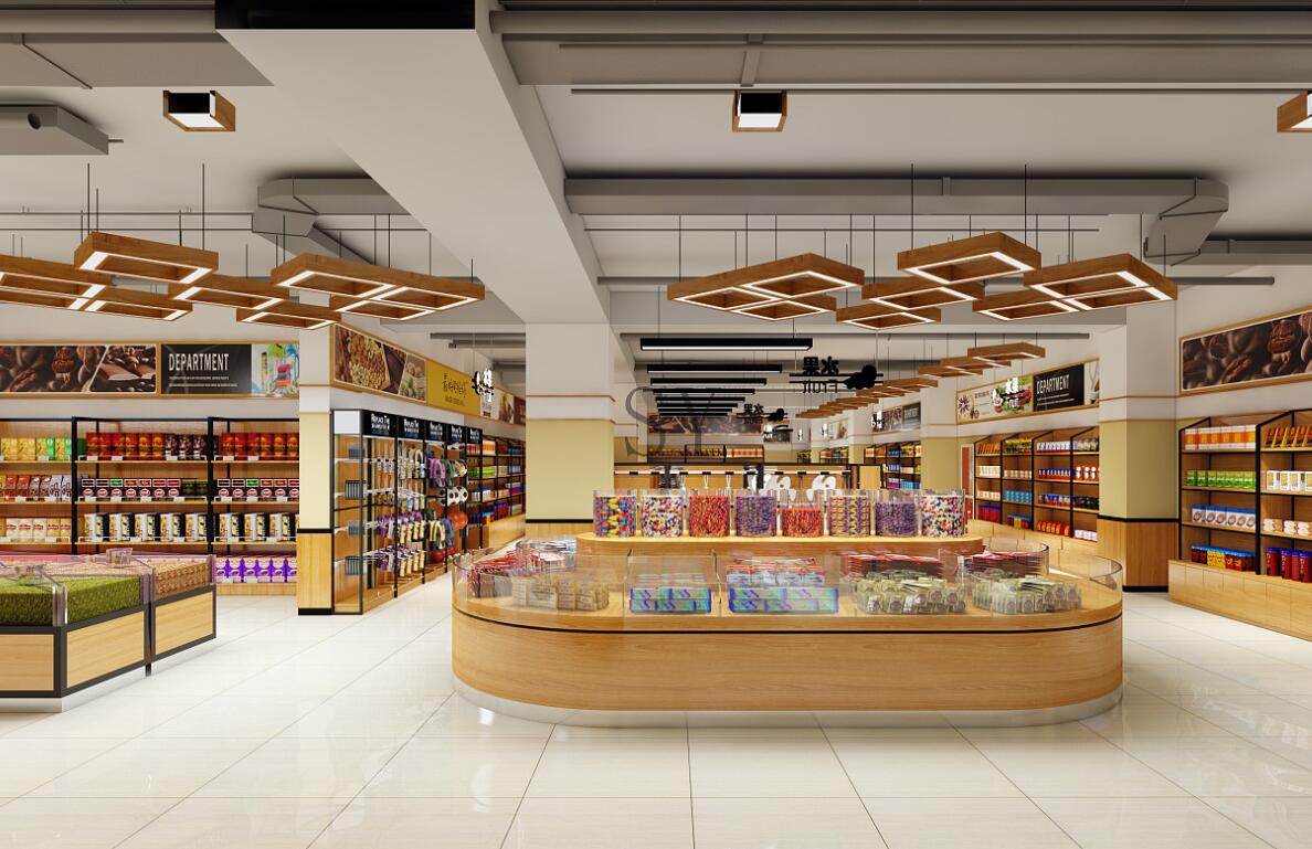 天花板設(shè)計:天花板設(shè)計可以增加超市的視覺效果和空間識別度,使整個超市空間更加溫暖舒適。